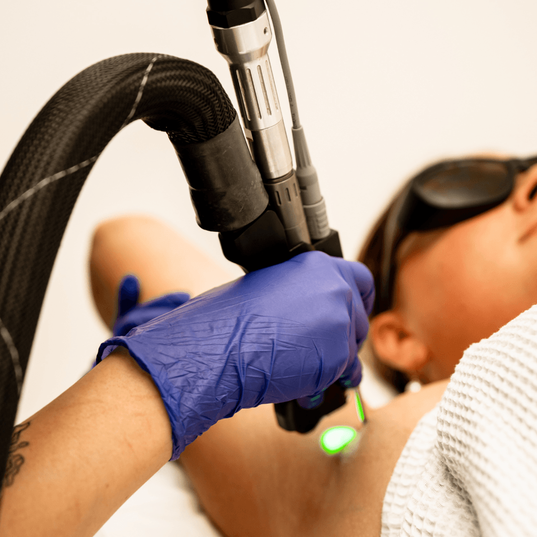 Each session begins with a health check and the wearing of protective eyewear. Our technician adjusts the laser to your skin type, then gently treats the targeted area.